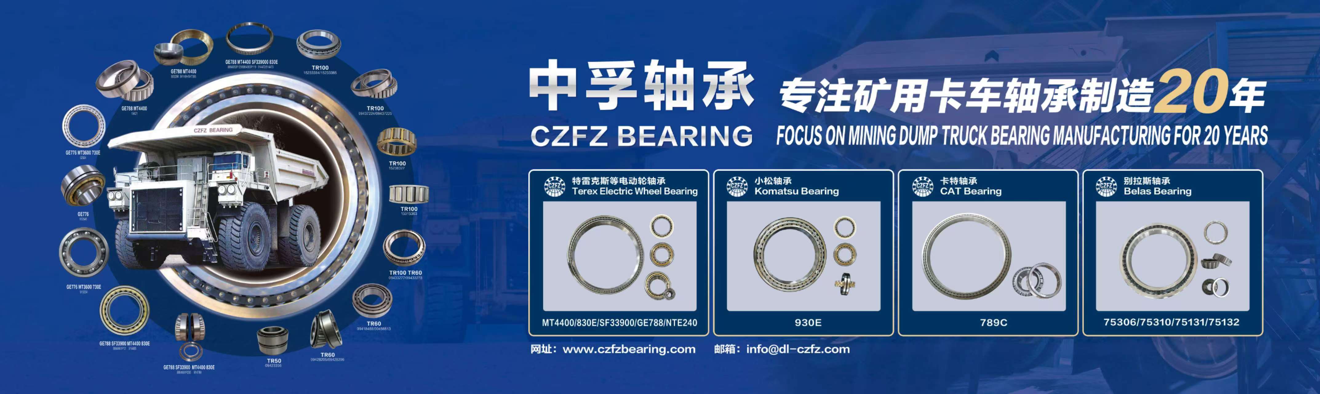 公司從2005年開始試制生產325M車型軸承,成功替代進口軸承,得到廠家的好評。2007年開始研制開發(fā)特雷克斯系列車型軸承,2010年后開發(fā)多個系列的電動輪軸承(載重130T-320T車型)。產品已被國內多家企業(yè)所采用,并遠銷美國、英國、土耳其、俄羅斯、印度、澳大利亞、新西蘭等國內外市場。
